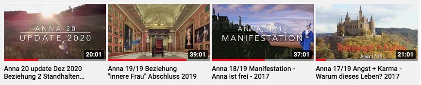| Therapieverlauf: Anna war kaum noch lebensfähig. Sie machte 45 Sessions von 2013 - 2020 mit Bernd Joschko (65 Stunden). Diese Innenweltarbeit wurde auf 20 Videos reduziert und auf YOUTUBE hinterlegt (11 Stunden). Bernd + Anna wollen damit Menschen Mut machen, ihre Vergangenheit aufzuräumen und frei zu werden - egal was sich angesammelt hat. Diese Dokumentation ist einzigartig, denn sie zeigt den Veränderungsprozess der PSYCHE als Betriebssystem des Menschen auf. |